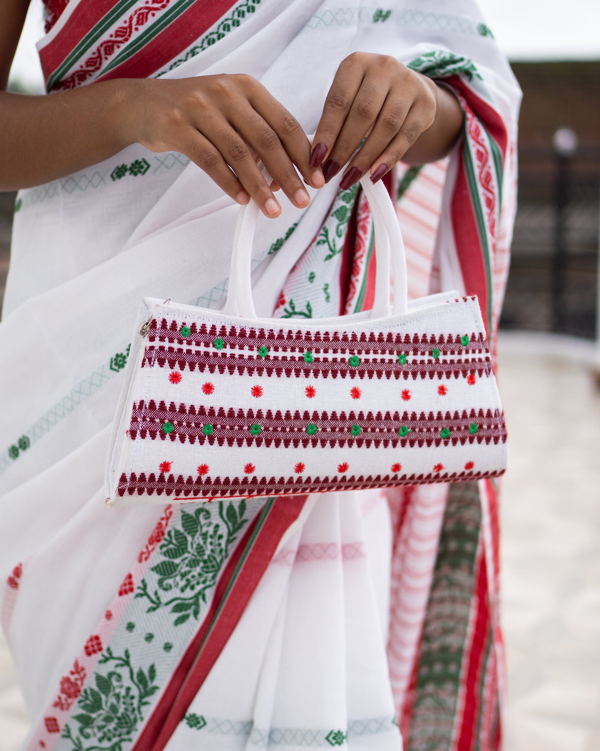 Made with durable, eco-friendly fabric, it’s lightweight yet sturdy – perfect for daily use, festive occasions, or as a statement accessory with ethnic and fusion wear. The compact yet spacious design makes it easy to carry essentials like your phone, wallet, and makeup on the go.
