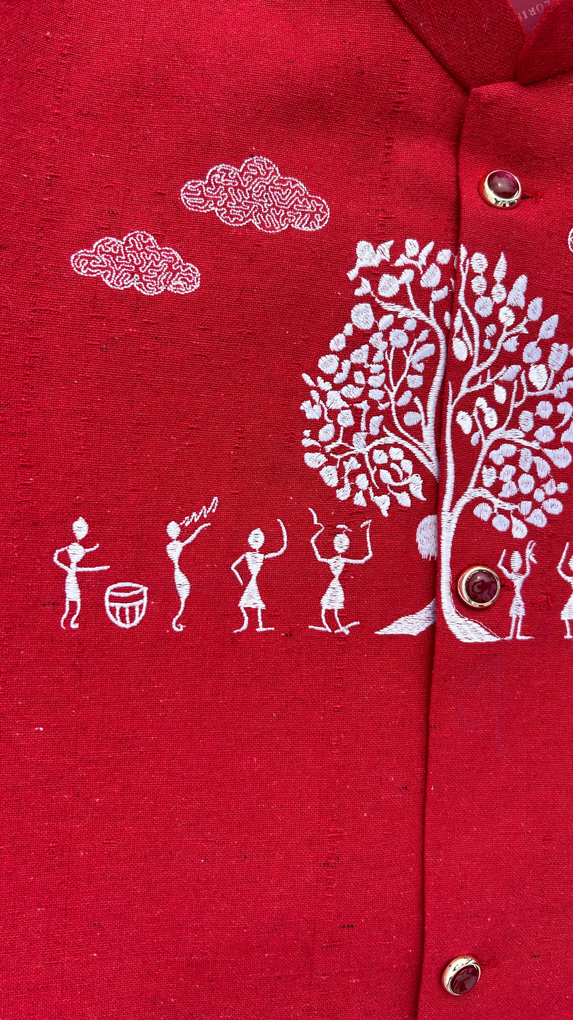 The Kukhena Tribal Bandi showcases traditional craftsmanship with a contemporary fit, designed to enhance your wardrobe with cultural authenticity. This vestcoat combines intricate tribal patterns and durable fabric, offering both style and comfort. Ideal for formal occasions or adding a distinctive layer to casual attire, it reflects a rich heritage while ensuring a sharp, polished look.